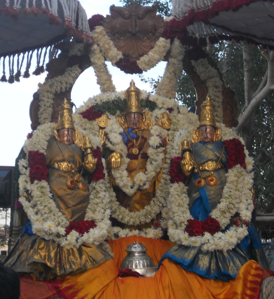 மூர்த்திகளுக்கும் ஆரத்தி சேவித்து தீர்த்தம், சடாரி அளித்தனர். திவ்யமாக